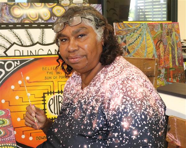 Dianne Sambo a Jaru/ Walmajarri artist from Bililuna. Her country is Sturt Creek.