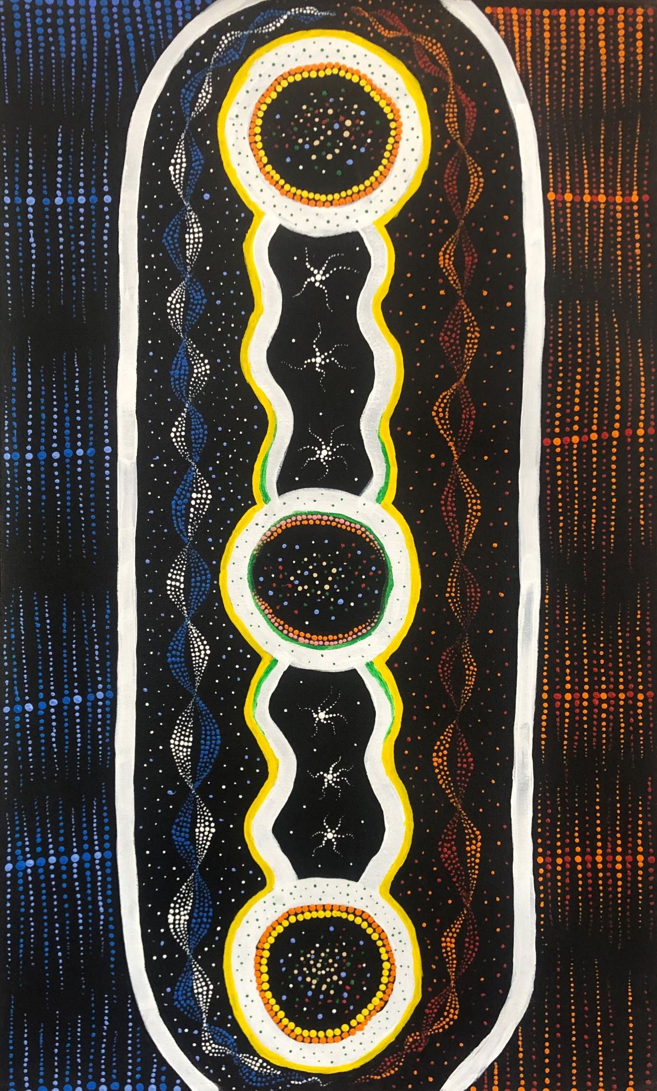 136-23 Snake Dreaming. 70 x 30 Acrylic on Canvas